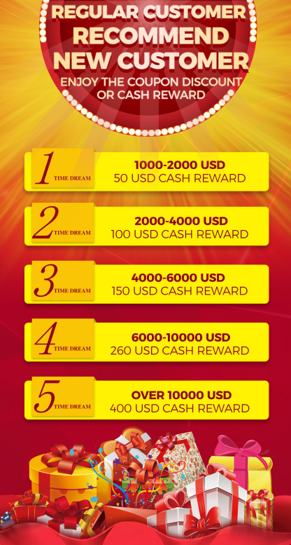 If your friend order amount is 1000-2000 USD, we will send 50 USD cash reward